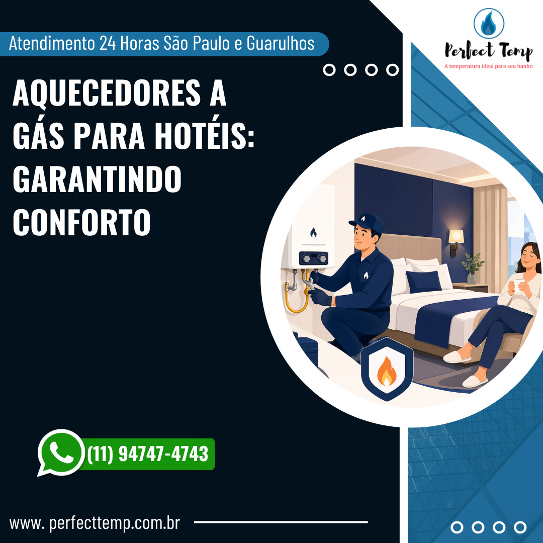 Mesmo com a manutenção em dia, imprevistos podem acontecer. É nessas horas que a agilidade e a expertise de uma equipe de assistência técnica de aquecedores a gás para hotéis fazem toda a diferença. A Perfect Temp oferece suporte para emergências 24 horas em São Paulo Capital e Guarulhos, garantindo que qualquer problema com o seu sistema de aquecimento seja resolvido rapidamente. Nossa equipe de técnicos qualificados está preparada para diagnosticar com precisão a causa da falha e executar o conserto necessário com eficiência, minimizando ao máximo qualquer transtorno para seus hóspedes. Ter um parceiro confiável como a Perfect Temp significa a tranquilidade de saber que seu hotel pode contar com água quente sempre que necessário, mesmo nas situações mais urgentes.