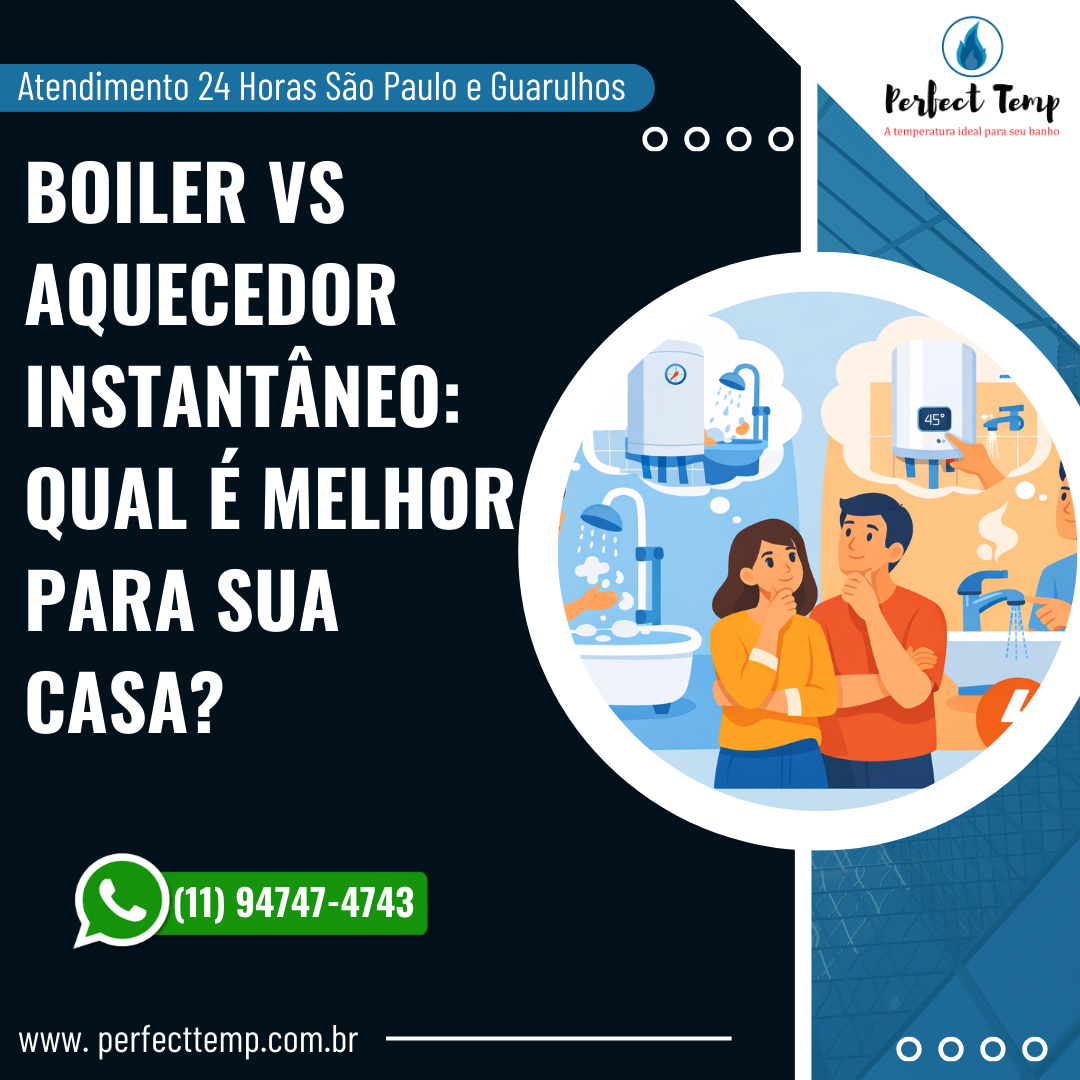 Na maioria dos apartamentos em São Paulo, o aquecedor instantâneo a gás é frequentemente o mais indicado devido ao seu tamanho compacto e à demanda mais controlada de água quente. Contudo, a Perfect Temp pode analisar seu caso específico para uma recomendação personalizada.