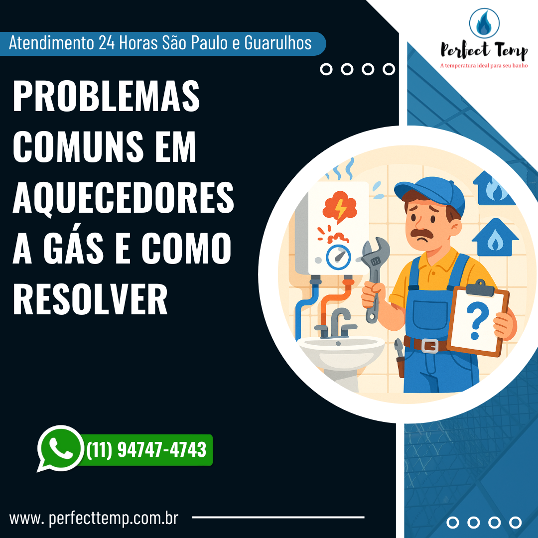 Entender os problemas comuns aquecedores gás é o primeiro passo para garantir a segurança e o conforto do seu lar. Lembre-se que a prevenção e a manutenção profissional são essenciais para evitar contratempos e prolongar a vida útil do seu equipamento. A Perfect Temp é a sua empresa de confiança em São Paulo e Guarulhos para venda, instalação, manutenção e conserto de aquecedores a gás, boiler e até conversão de fogão. Com suporte de emergência 24h, estamos sempre prontos para garantir seu aquecimento seguro e eficiente.